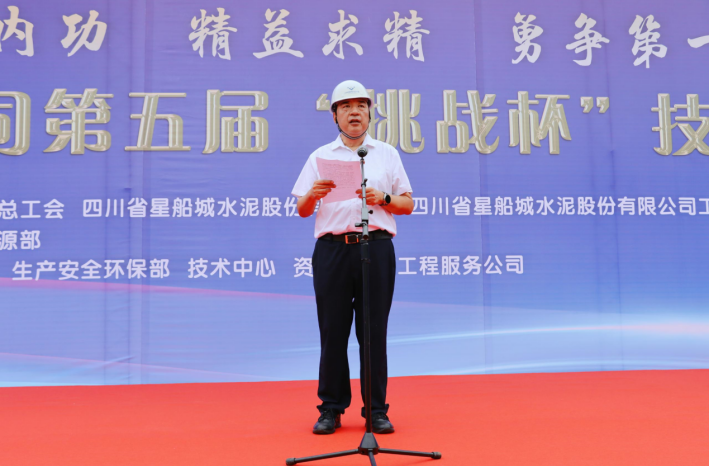 參賽選手代表袁理宣讀倡議書,要做技術(shù)“好漢”、“硬漢”和“癡漢”,不斷汲取新技術(shù),練就新技能,敢于技術(shù)創(chuàng)新,力求技術(shù)突破,奮力為川威水泥可持續(xù)發(fā)展奉獻(xiàn)力量。