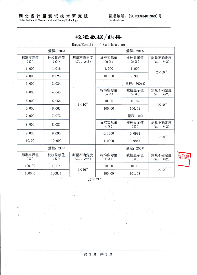 測(cè)量范圍  5A:   10mΩ~4Ω